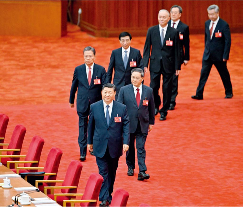 中国共产党第二十届中央委员会第三次全体会议,于2024年7月15日至18日在北京举行。这是习近平、李强、赵乐际、王沪宁、蔡奇、丁薛祥、李希等步入会场。新华社记者 岳月伟/摄
